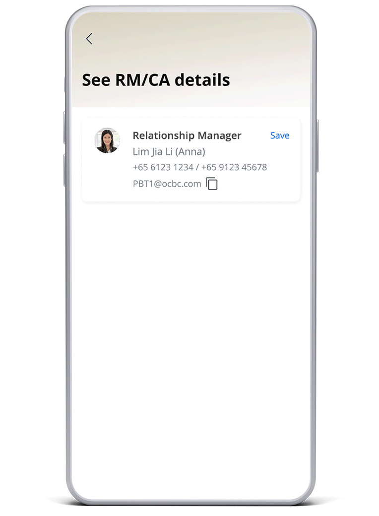 You can now conveniently access your dedicated Relationship Manager's contact details within the OCBC app, and enjoy a new colour theme that offers a fresh, elegant look designed to reflect your Premier Banking status.