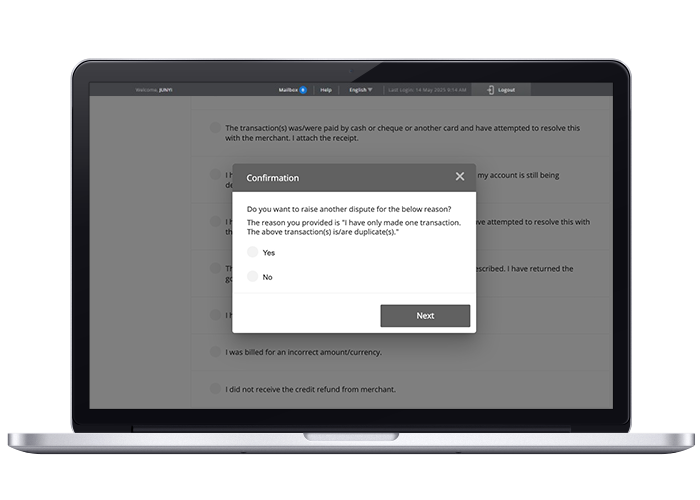 Step 6: You may select more transactions that you wish to dispute for the same reason