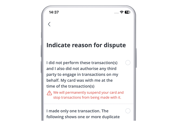 Step 2: Navigate to “Dispute transaction” / “Dispute credit card transaction”