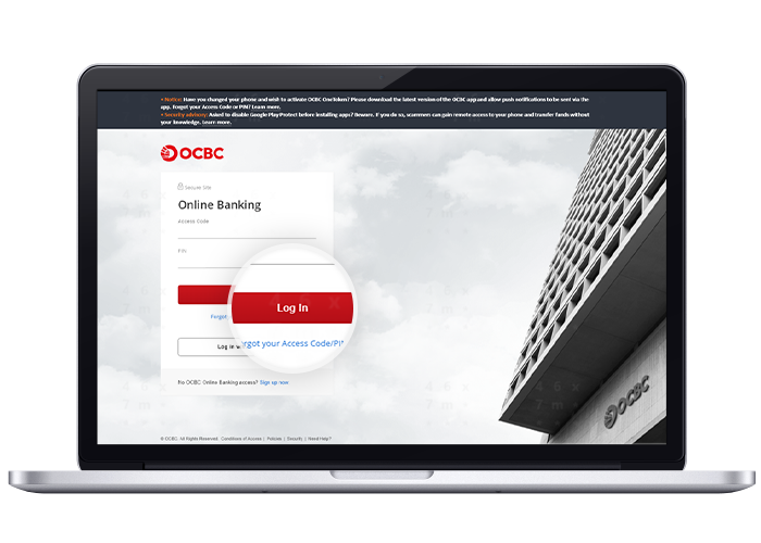 Step 1: Log in with your access code and PIN or OCBC OneLook™ or OCBC OneTouch™