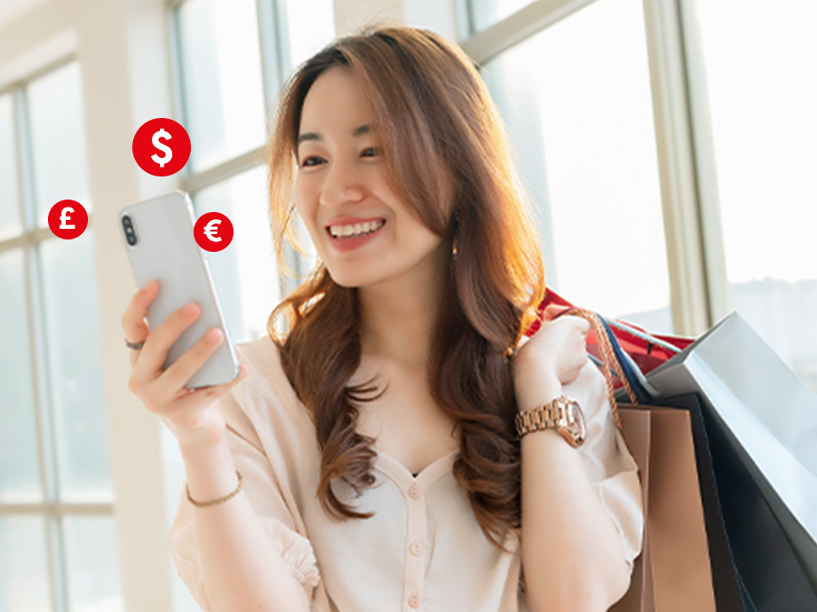 Enjoy zero fees or fall-below charges for FX transactions made using your OCBC Debit Card. Simply link the card to your Global Savings Account to start spending!