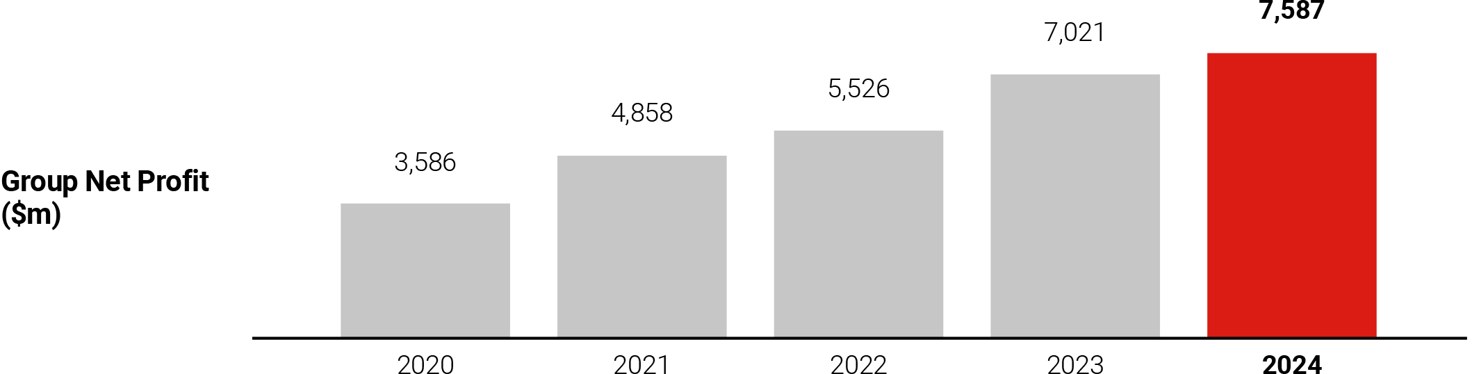 This 60% dividend payout is reflected in our 2024 total dividends. The Board has recommended a 16 cents special dividend per share and a final ordinary dividend of 41 cents per share. Together with the interim dividend, total 2024 dividends will amount to $1.01 per share, 23% above 2023. Our total shareholder returns have doubled over a five-year period as at end-2024, and the $2.5 billion capital return will further enhance returns to shareholders. This underscores our commitment to drive long-term value for you.
