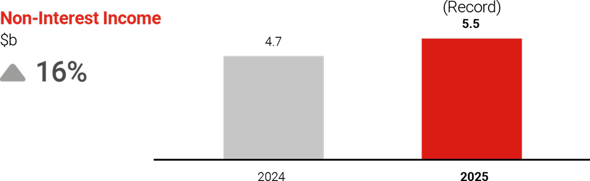 Total income rose to a record $14.6 billion despite headwinds from declining interest rates. We defended our net interest income with proactive balance sheet management while wealth, trading and insurance delivered stellar income for the year. Wealth management AUM and fee income hit record levels, which was a strong testament to our strategic efforts to drive growth in the wealth space.