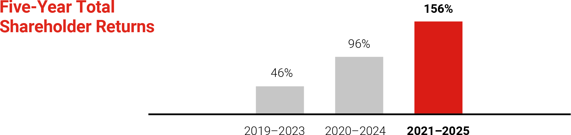 Our strong balance sheet and capital position have enabled us to deliver higher shareholder returns. Our five-year total shareholder returns rose to 156%, from 96% in the previous year. This has reinforced conviction in our ability to consistently deliver long-term value for shareholders.