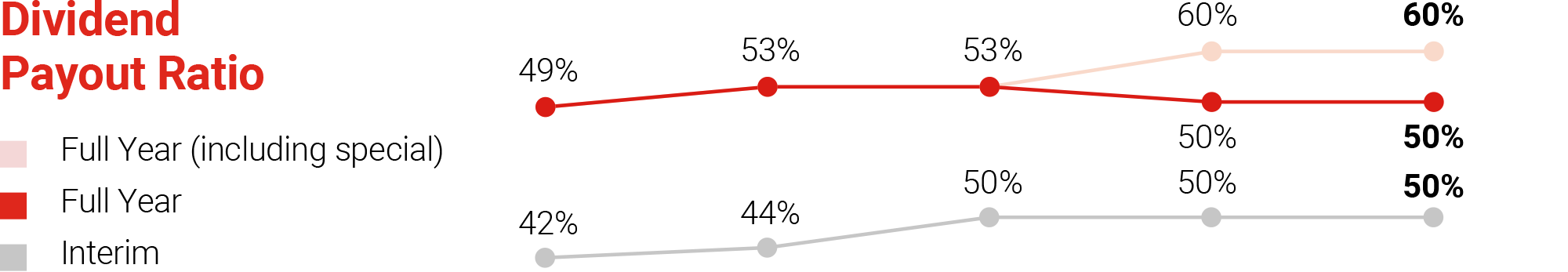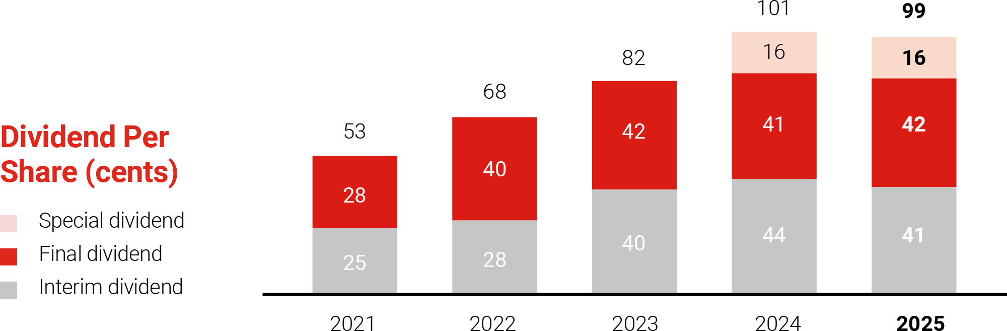 Dividend payouts were raised to 60% in 2024 and 2025 – part of a $2.5 billion two-year capital return plan announced in February 2025. We are committed to completing the capital return plan by financial year 2026.