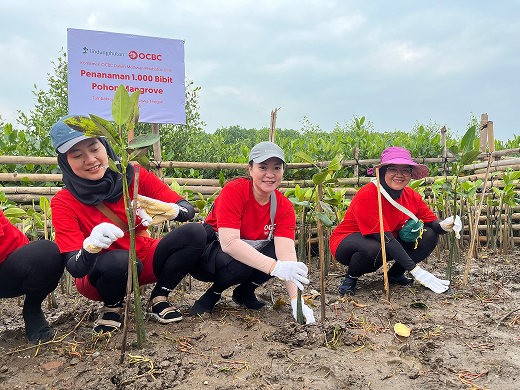 OCBC volunteers planted 1,000 mangrove seedlings along the Tambakrejo Coast, Central Java to support coastal restoration. Working alongside local farmers, these volunteers also checked on the 10,000 mangrove saplings previously planted by the team in Trimulyo to monitor their growth. These efforts help protect vulnerable coastlines from rising sea levels and environmental risks, while strengthening long term community resilience.