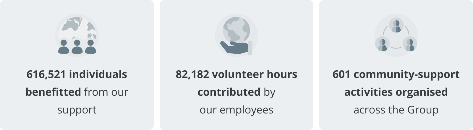 We also place a strong emphasis on supporting underprivileged communities in strategic areas across our core markets. Through customised programmes and activities led by our employee volunteers, we address challenges and respond to the specific needs of these communities. Our community engagement efforts, delivered through the #OCBCCares Programme, are centred on key thematic areas aligned with the Group’s Sustainability Framework: