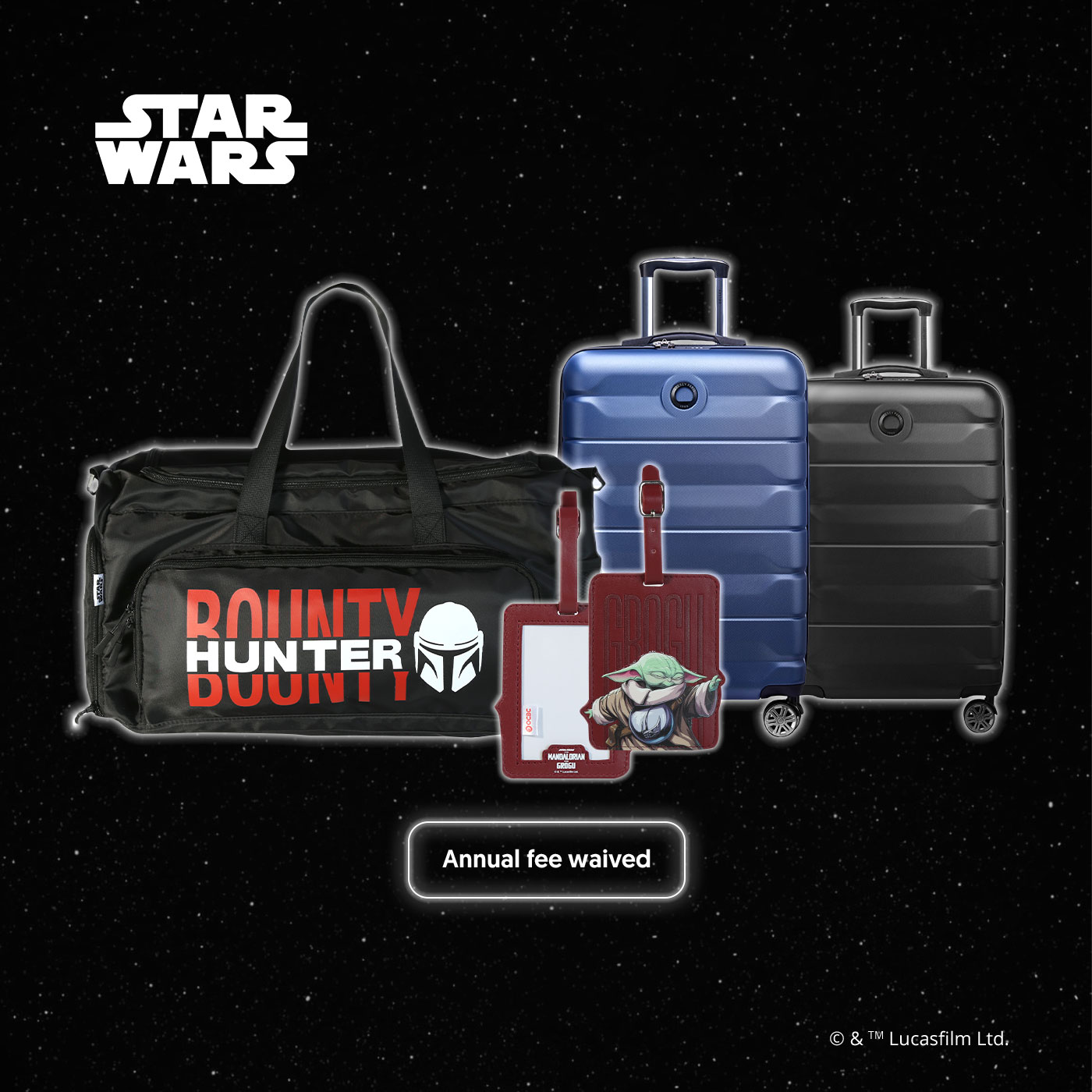 - Star Wars Mandalorian duffel bag and Grogu luggage tag