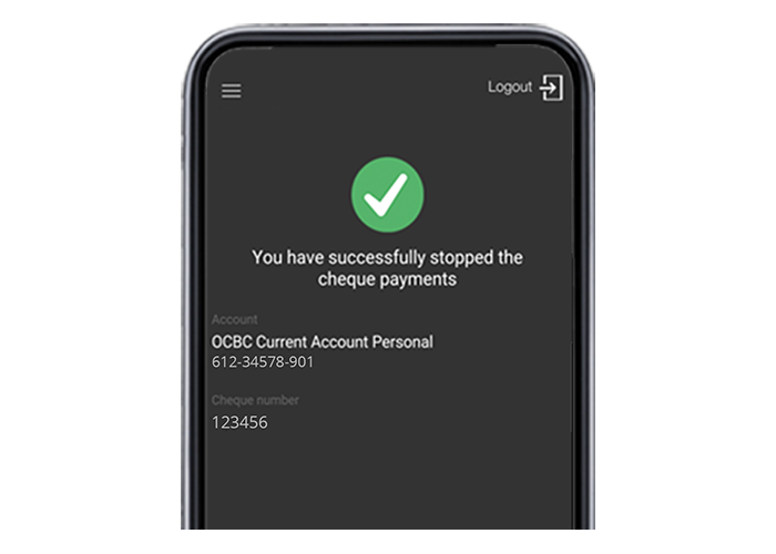 Select "Single Cheque" or "Range of Cheque" and fill in the cheque number(s) before tapping on "Next".