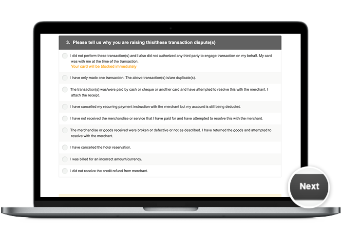 Step 6: You may select more transactions that you wish to dispute for the same reason