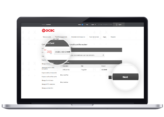 Step 1: Log in with your access code and PIN or OCBC OneLook™ or OCBC OneTouch™
