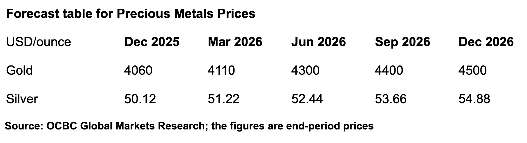 We remain constructive over the medium-term outlook for gold, underpinned by expectations that the Fed will continue easing its policy into 2026, rates should trend lower overall, and central bank and institutional diversification demand should stay strong.