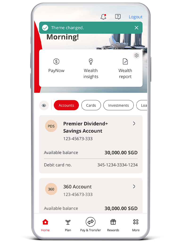 You can now conveniently access your dedicated Relationship Manager's contact details within the OCBC app, and enjoy a new colour theme that offers a fresh, elegant look designed to reflect your Premier Banking status.
