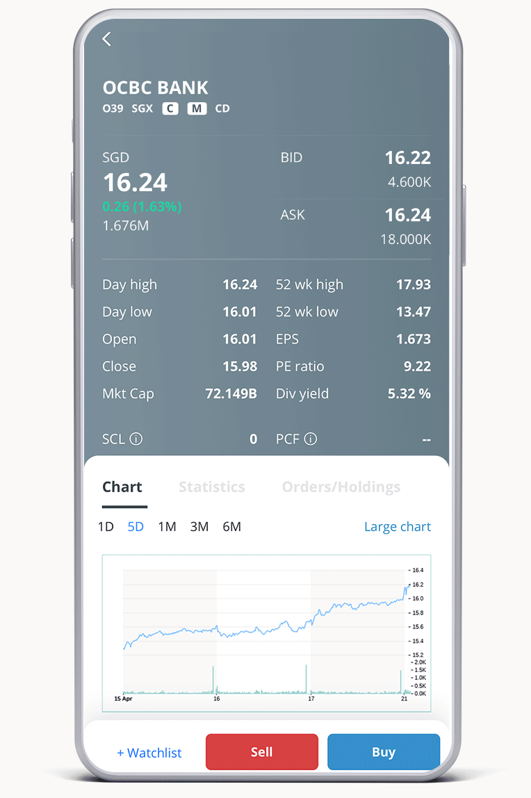 Previously, you were not able to trade Equities (defined as exchange-listed shares, excluding Rights, Warrants, and Singapore Depository Receipts, Real Estate Investment Trusts (REITs) and Exchange- traded Funds) through your Wealth Portfolio. With this enhancement, you will be able to trade these Equities via the OCBC app and Internet Banking.