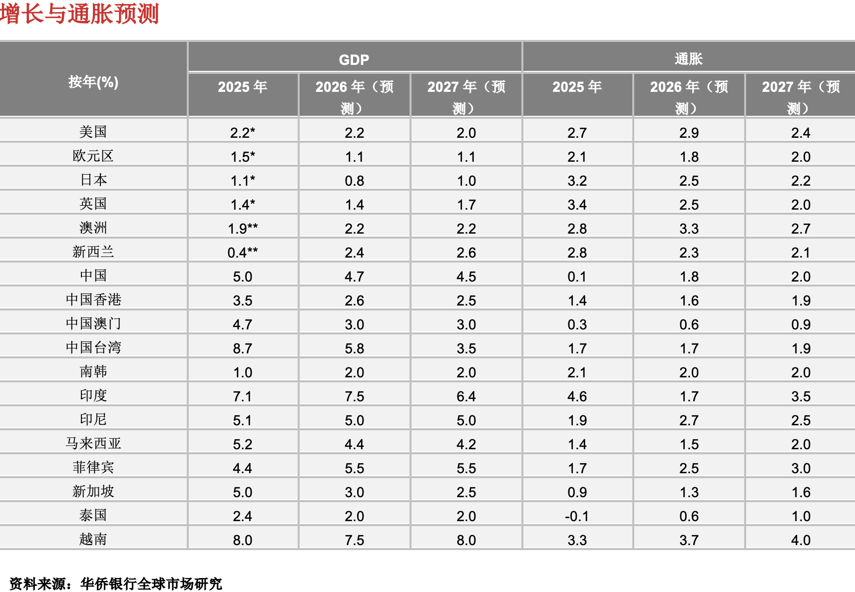 尽管存在如此不确定性,但2025年经济增长仍展现韧性,整体通胀率亦维持在欧洲央行2%的目标范围内。我们维持欧洲央行于2026年全年将维持利率不变的预期。